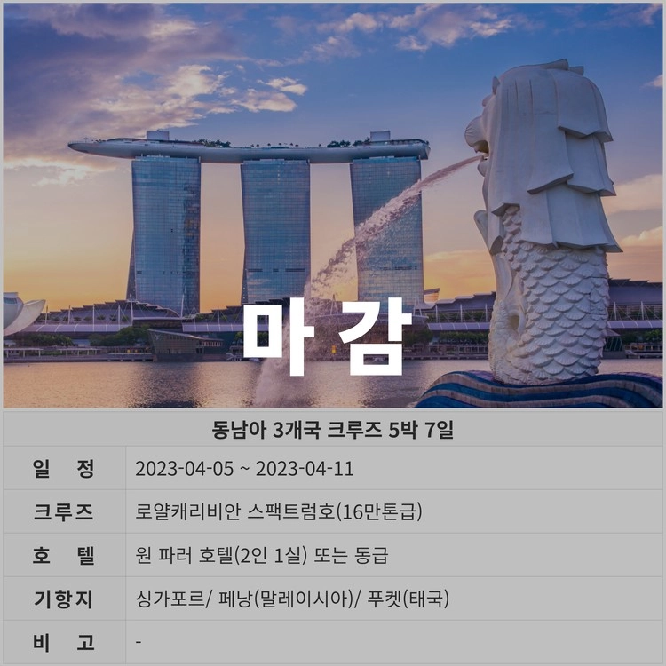 동남아 크루즈 3개국 5박 7일 [23년 4월]
