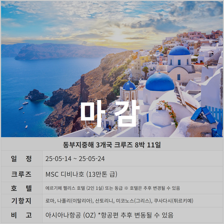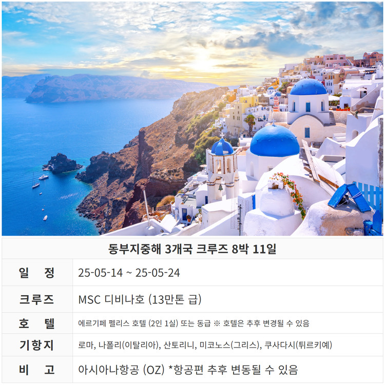동부지중해 크루즈 3개국 11일 [25년5월]